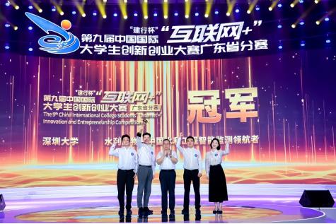 2023年8月16日,“建行杯”第九届中国国际“互联网+”大学生创新创业大赛(以下简称:“互联网+”大赛)广东省冠军争夺赛暨颁奖仪式在深圳大学落下帷幕。群雄逐鹿,最终6支队伍脱颖而出进入冠军争夺赛。又经一轮激烈比拼后,深圳大学“水利万物——中国水利工程智能监测领航者”项目以总分1125分夺得全省总冠军。